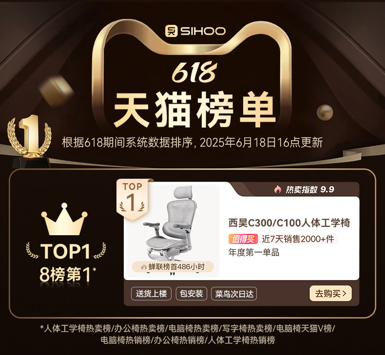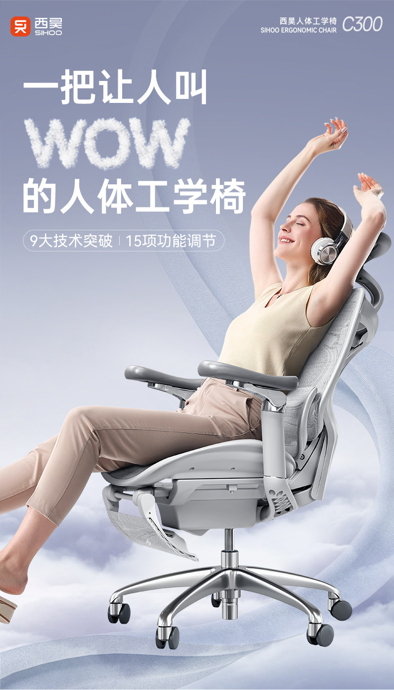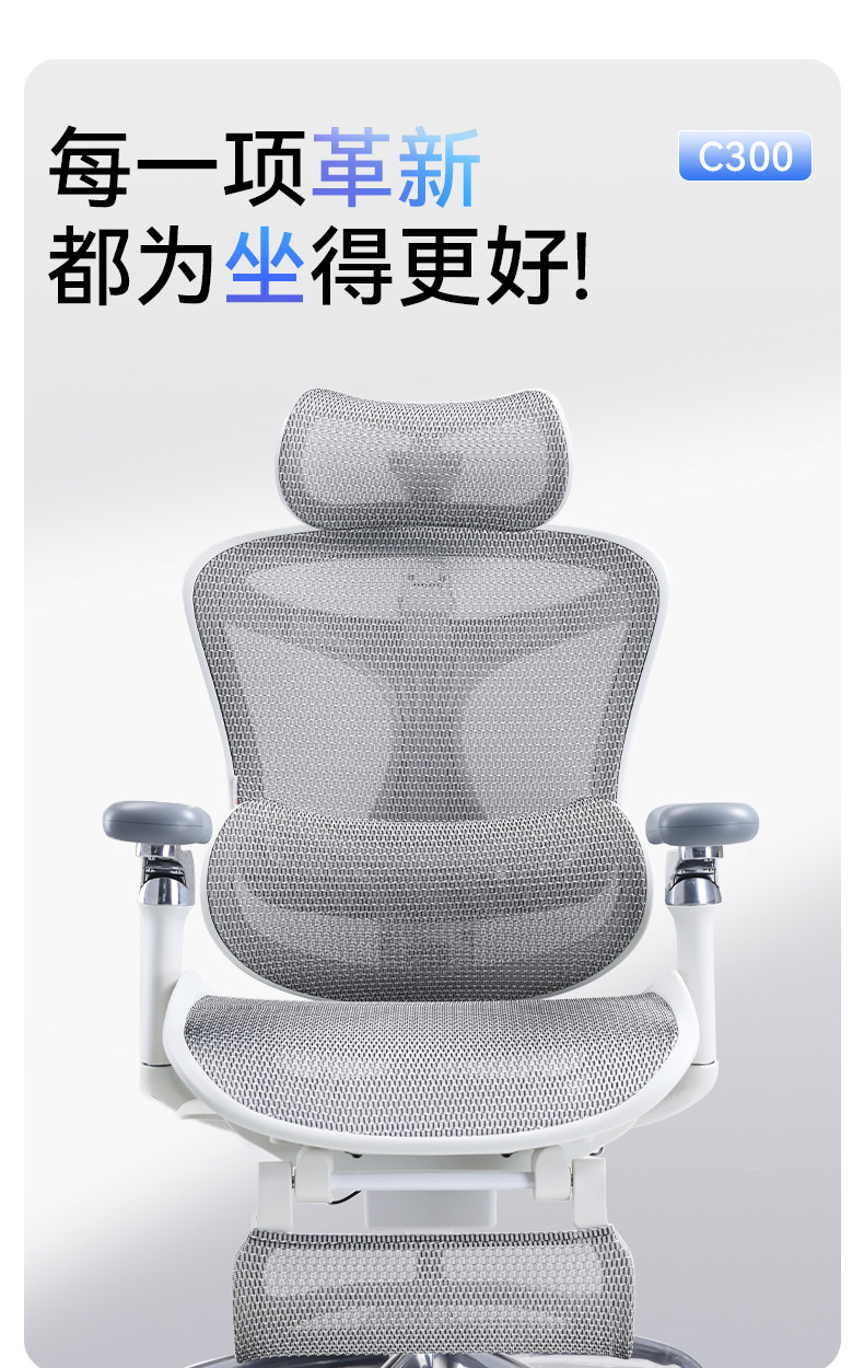 西昊C300人体工学椅 可躺式电竞座椅带脚踏电脑椅