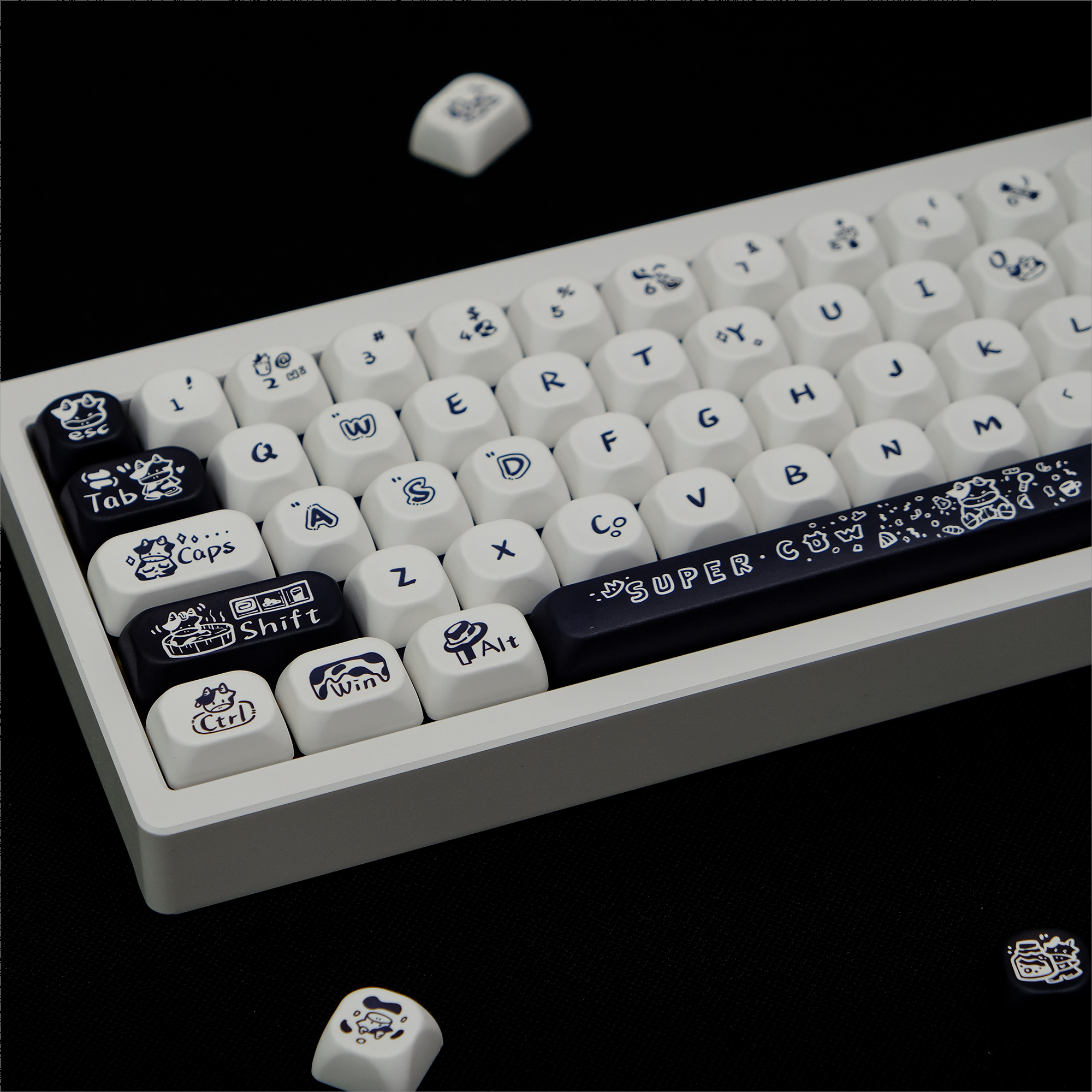 浅笑代工虚妄设计-超级奶牛主题五面热升华键帽QX3圆润球帽75
