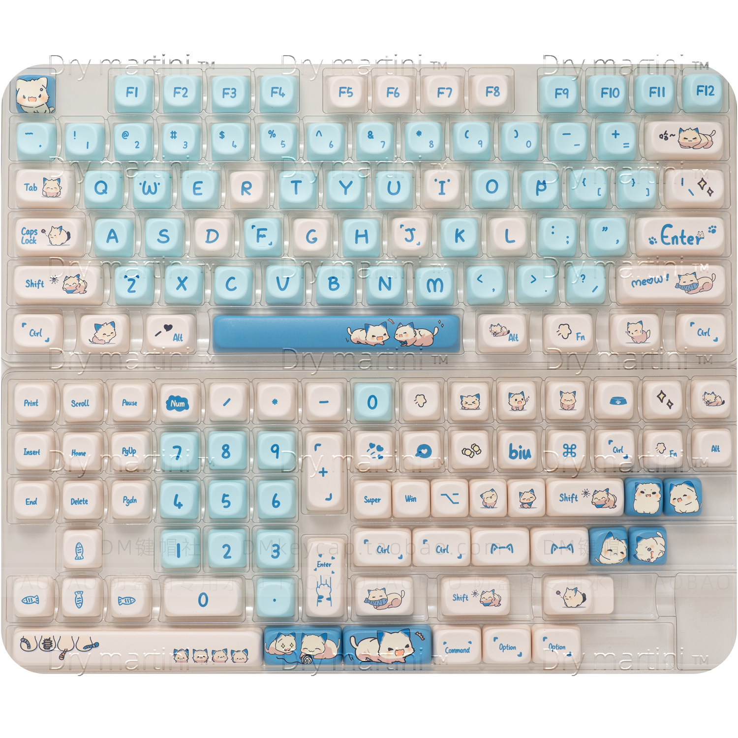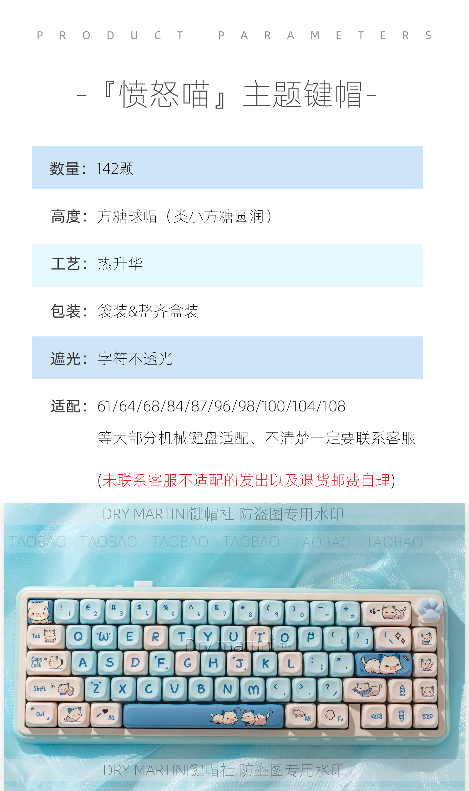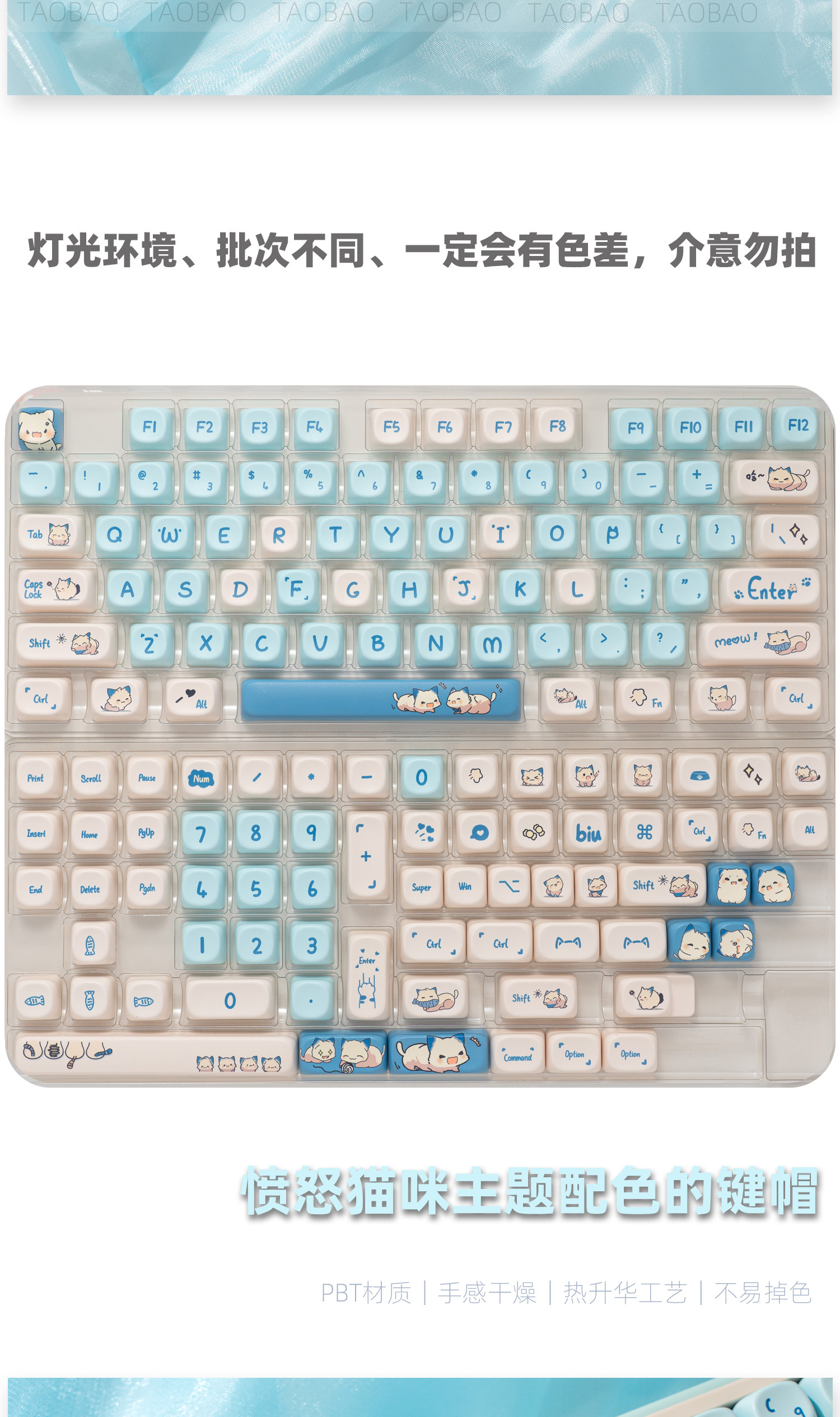 愤怒猫咪键帽可爱球帽圆润方糖高度PBT热升华68 75 84 87 98 108