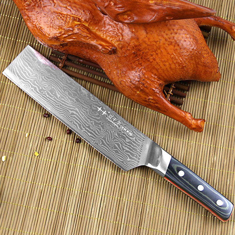 双十字片鸭刀片烤鸭专用刀切片刀大马士革龙纹片鸭...