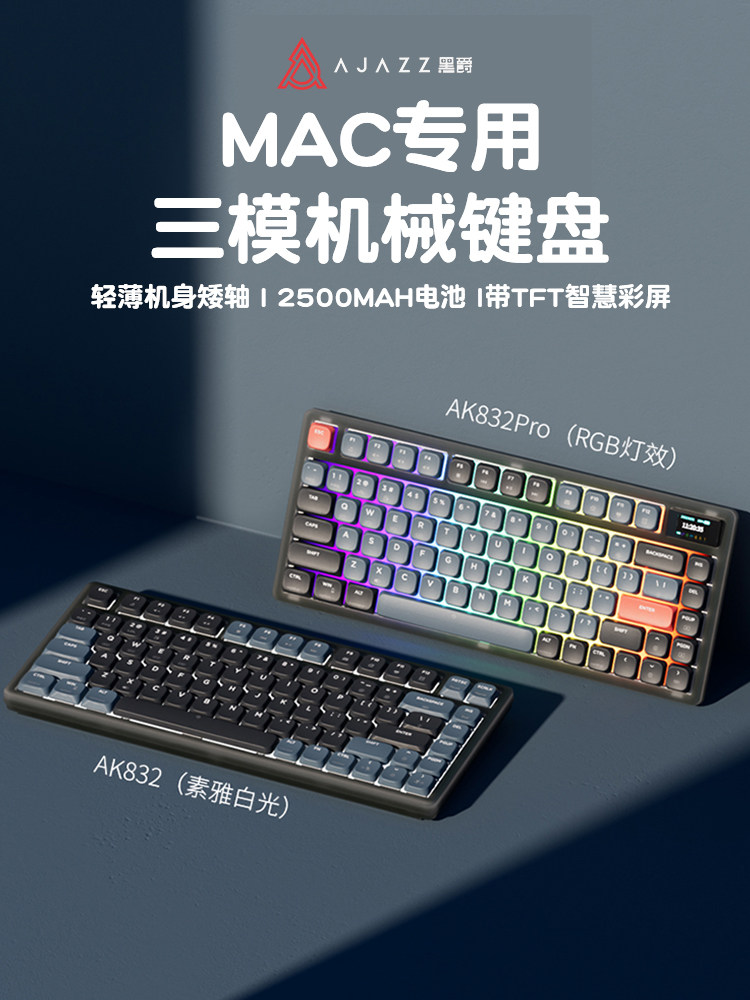 黑爵AK832蓝牙矮轴机械键盘超薄mac短轴ipad便携无...