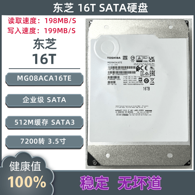 保两年东芝16T氦气机械硬盘监控安防企业级硬盘16TB...
