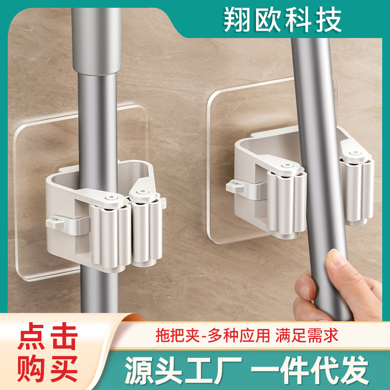多功能壁挂拖把夹固定器浴室卫生间免打孔拖把挂钩...