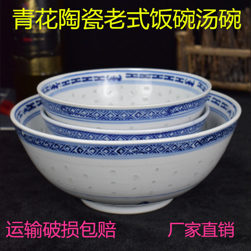 景德镇老式青花中式复古瓷米饭碗玲珑汤碗米通陶瓷...