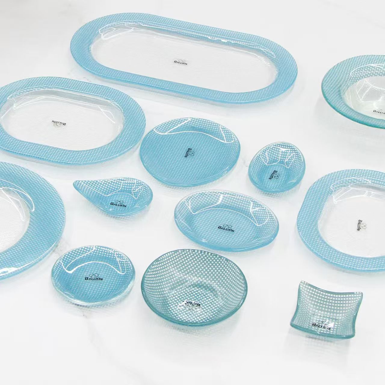 韩式风多巴胺耐热玻璃小碟子寿司盘家用方格迷你蘸...