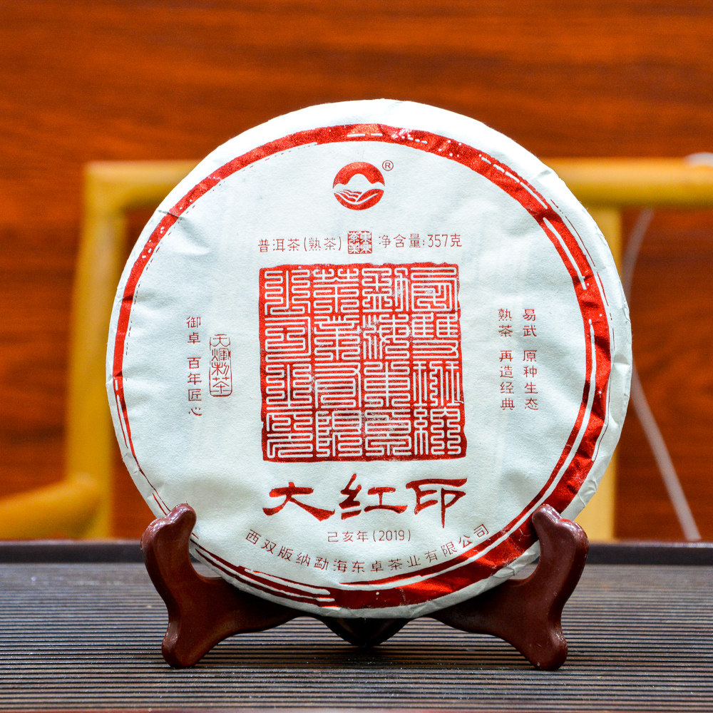 【正品干仓】东卓茶业2019年大红印 357克熟茶饼茶 ...