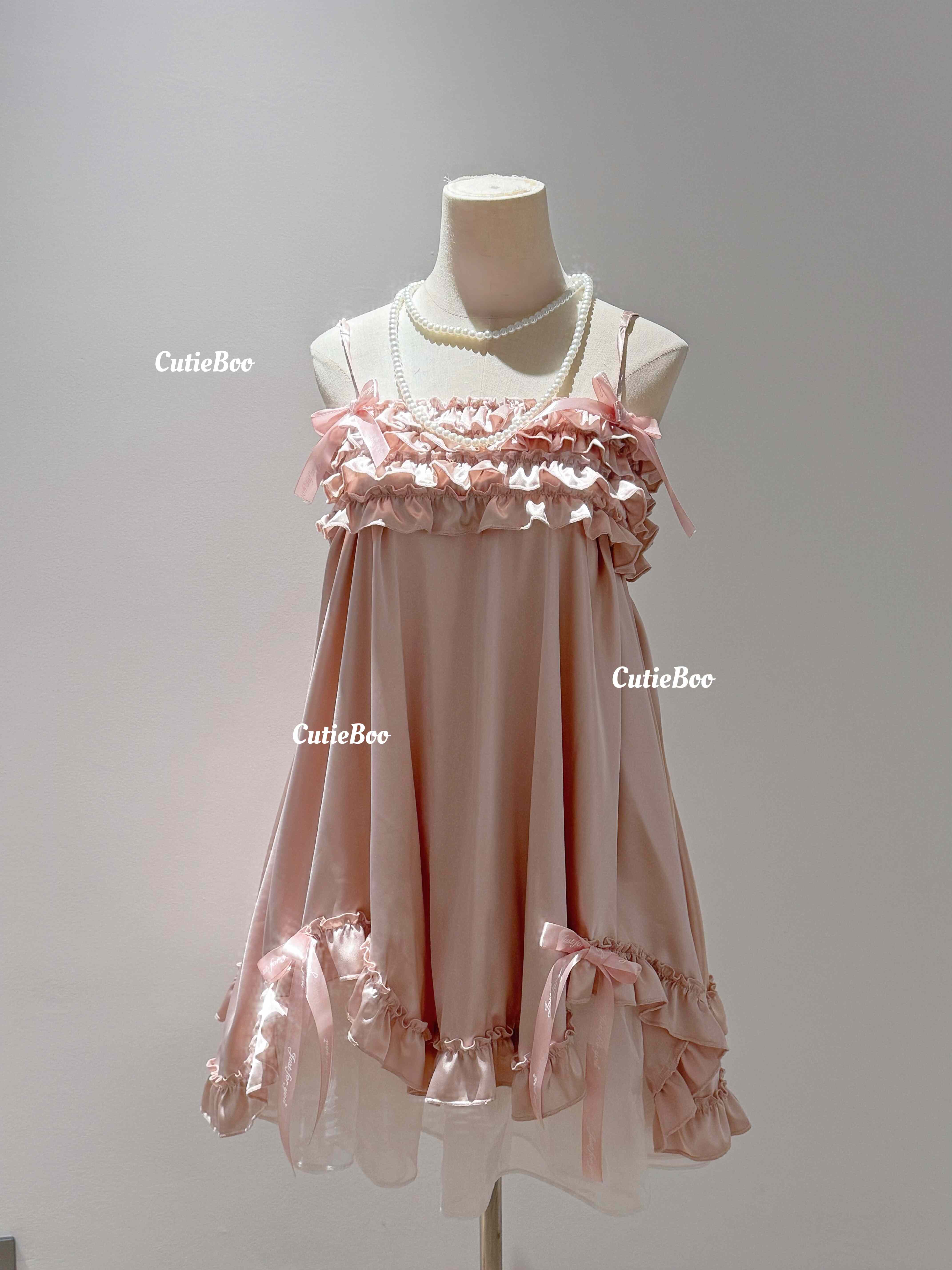 CutieBoo/ “优雅小姐” 珠光缎面蝴蝶结吊带连衣裙