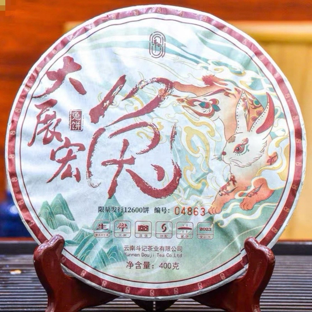 斗记2023年生肖系列兔饼大展宏兔普洱古树生茶400克...