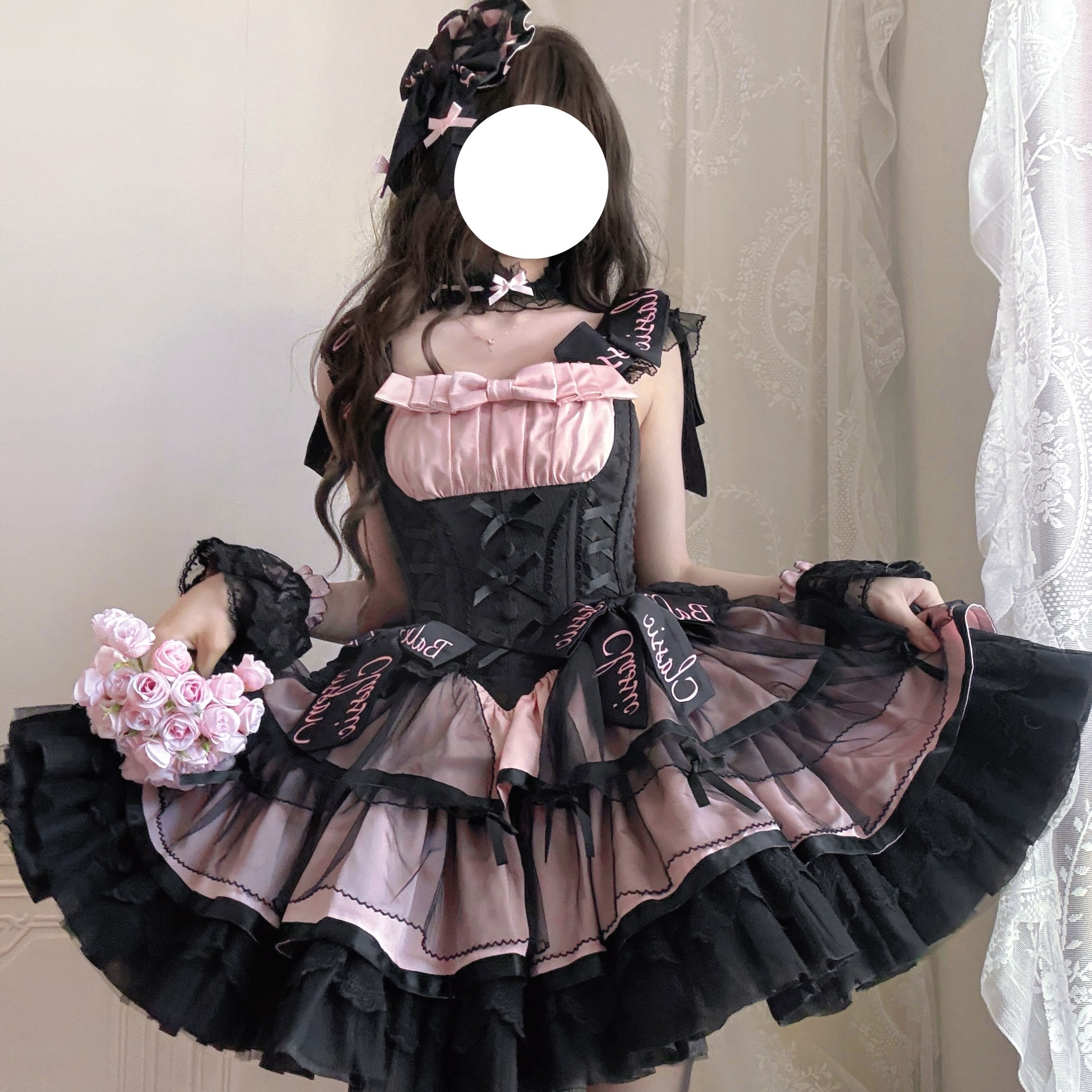 全款失落樱桃Lolita原创粉雾芭蕾洛丽塔黑粉Jsk连衣...