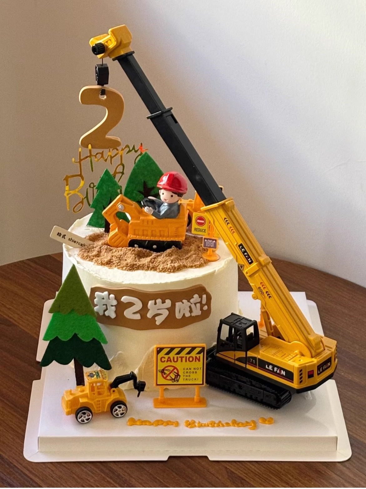 男孩挖土机蛋糕装饰吊塔工程车摆件路障交通塔吊警...
