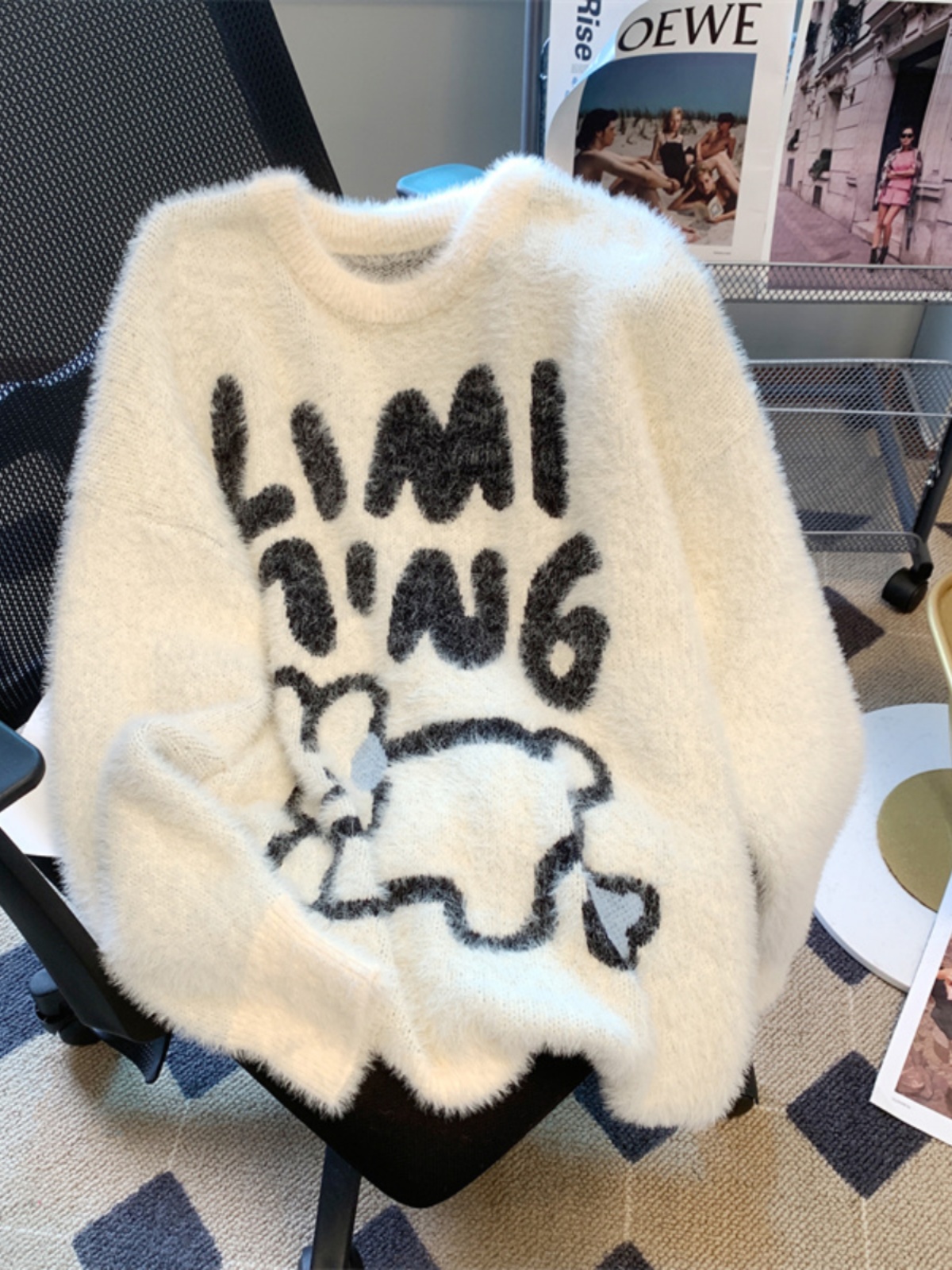 兔子毛衣女秋冬2025新款水貂绒加厚宽松慵懒风外穿...