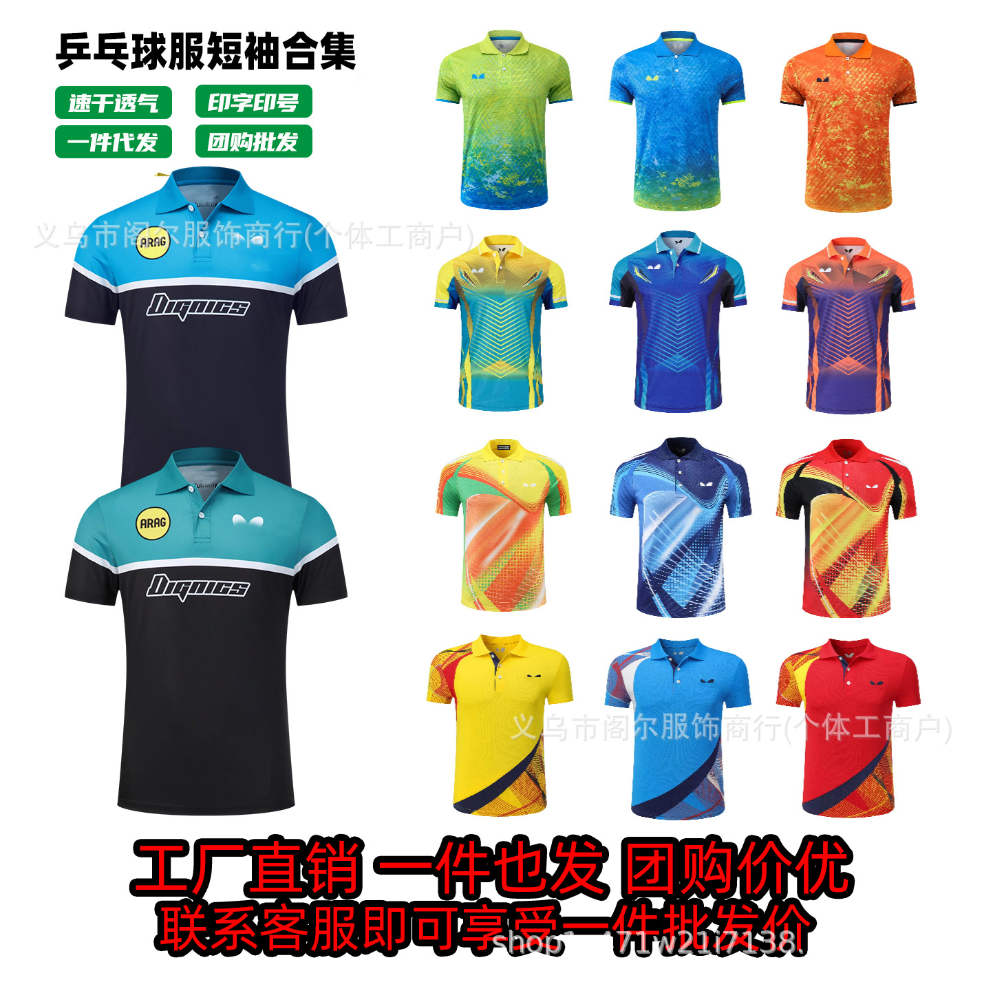 蝴蝶乒乓球服速干短袖翻领polo运动服男女儿童比赛...