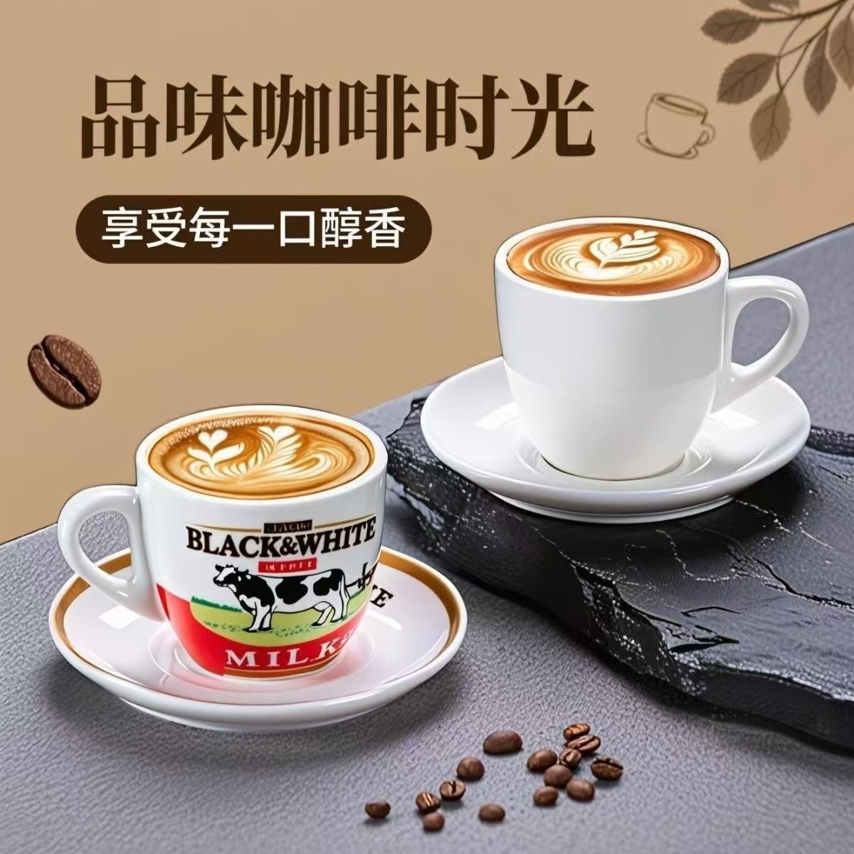 黑白淡奶咖啡杯碟香港版高品质港式茶餐厅奶茶杯马...