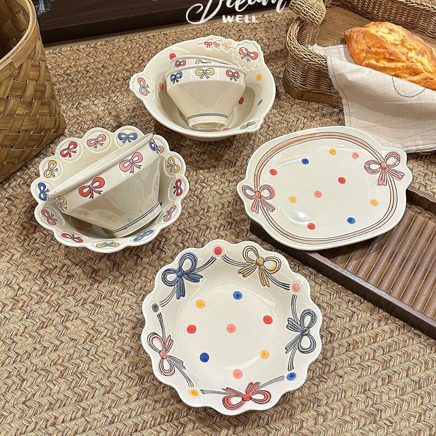 蝴蝶结釉下彩餐具陶瓷饭碗家用2025新款高颜值碗具...