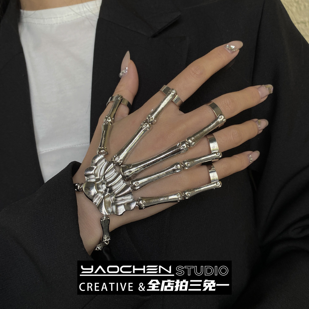 夸张个性骷髅骨架外骨骼手链手套可灵活活动关节可...