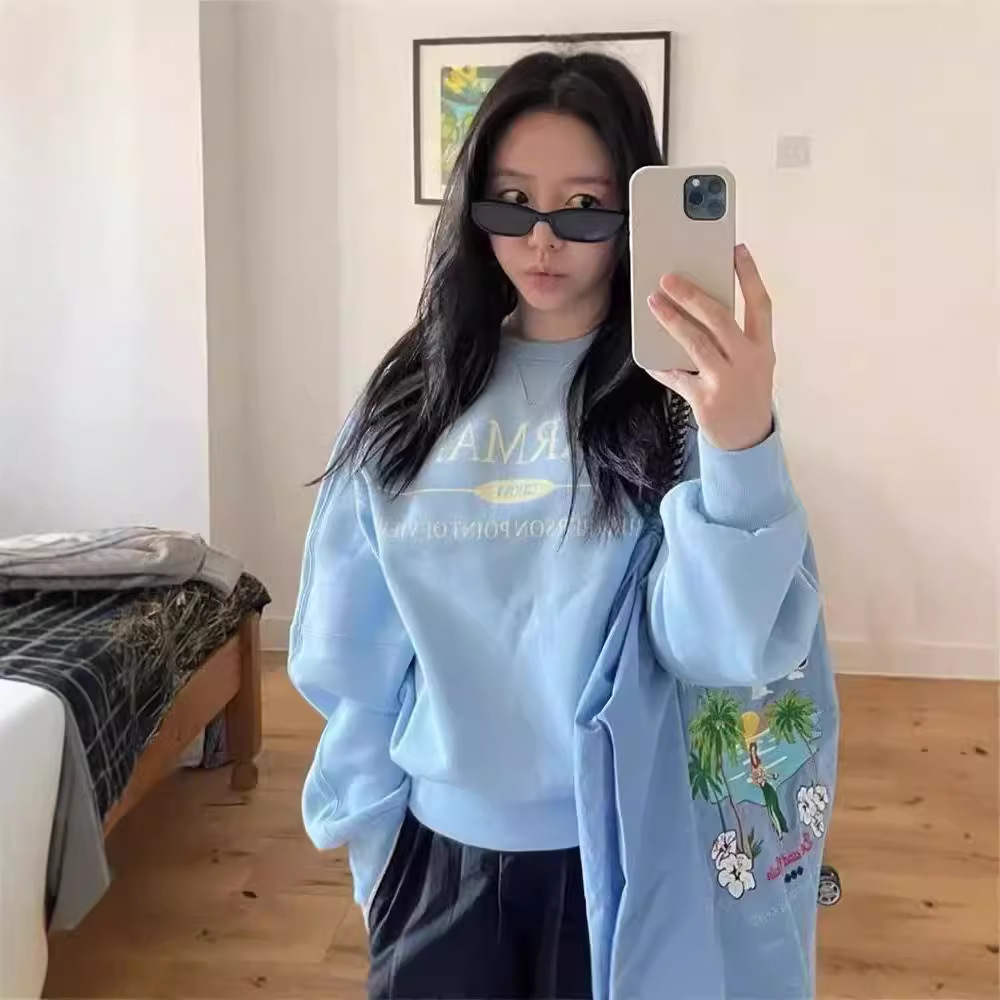 现货韩国小众grove秋季新款慵懒百搭字母印花休闲毛...