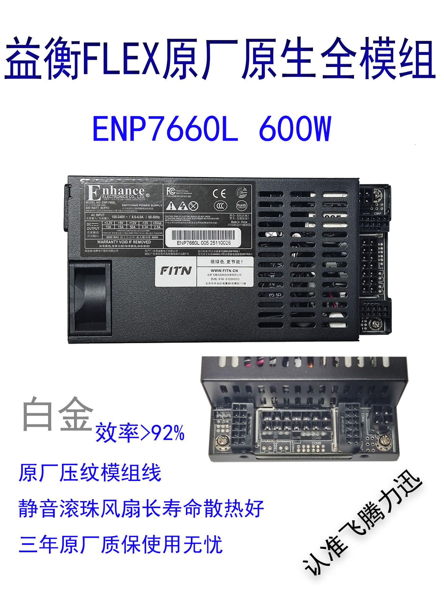 益衡原生全模组 Enhance ENP 7660L 小1U电源 600W/...