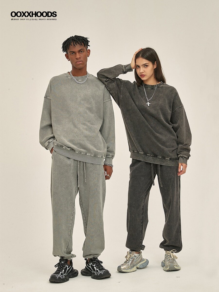 欧美420G复古OVERSIZE做旧暗黑卫衣潮牌落肩男女重...