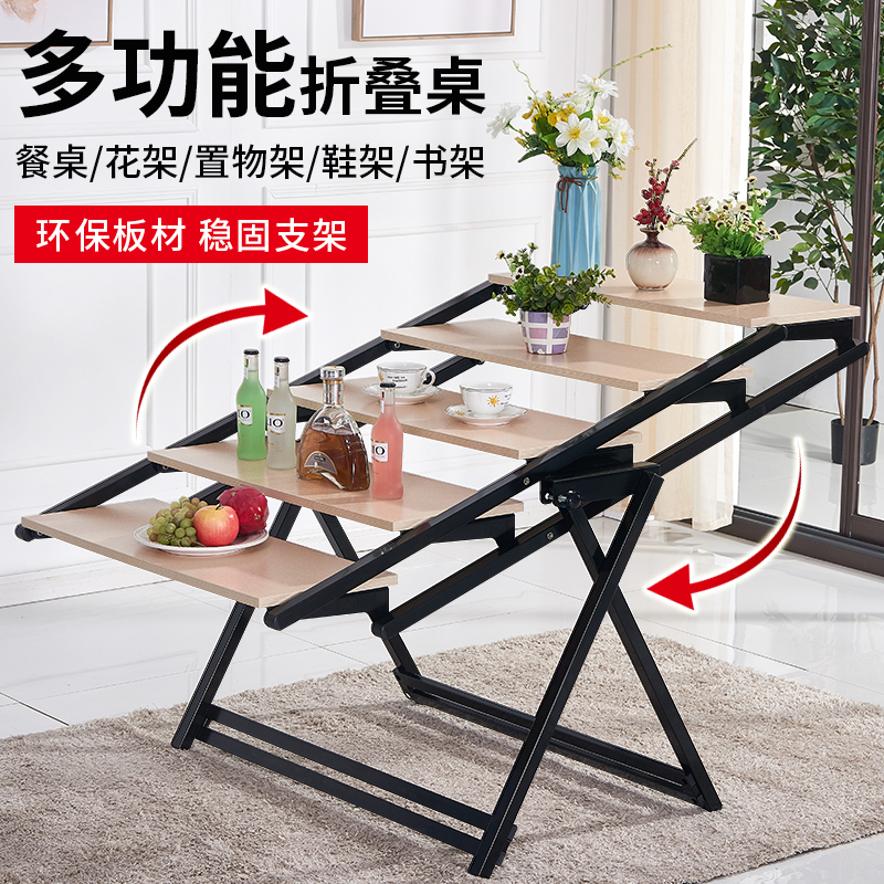 W7变形桌子折叠餐桌多功能折叠桌多层书架阳台置物...