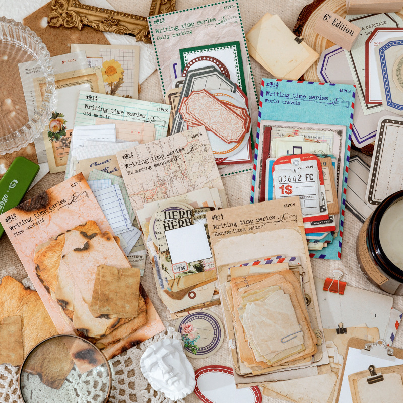 糖诗贴纸包 书写时光系列 复古书写手绘便签DIY基础...