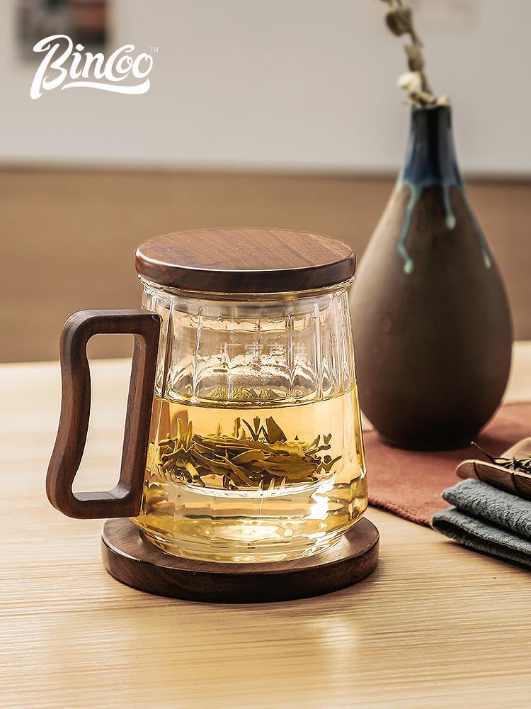 玻璃茶杯茶水分离泡茶杯日式茶道杯带盖过滤水杯男...