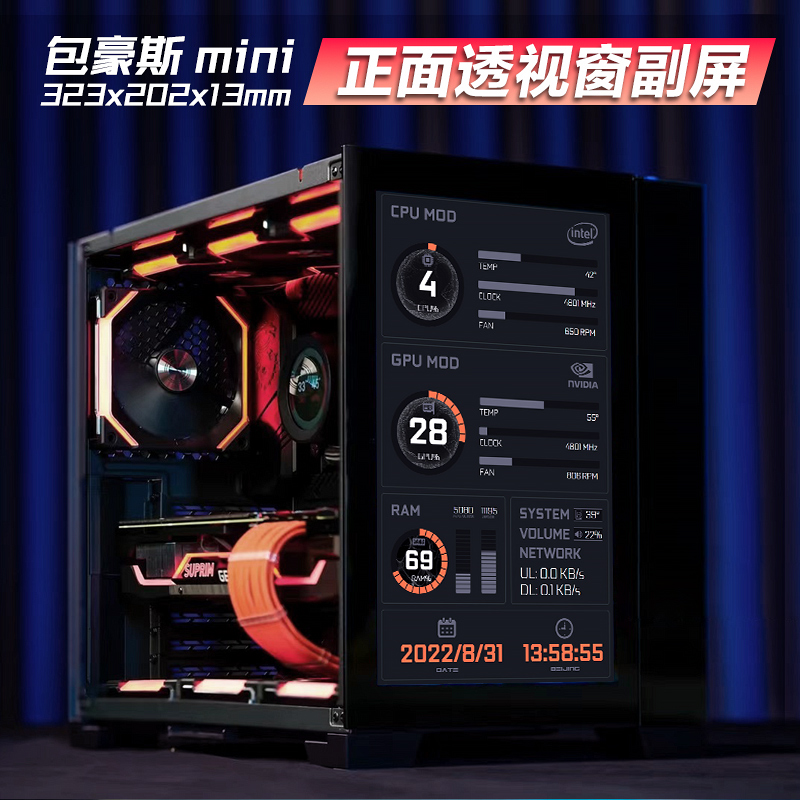 联力包豪斯O11Dmini机箱副屏幕 可自定义动态内容 A...