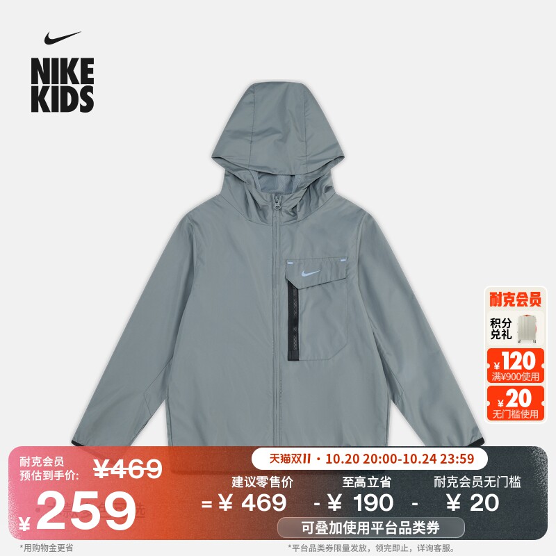 耐克大童宽松机能风夹克男女童时尚防泼水梭织外套N...