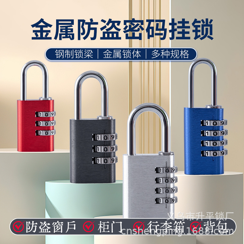 铝合金彩色密码挂锁行李箱包密码锁健身房柜子门挂...
