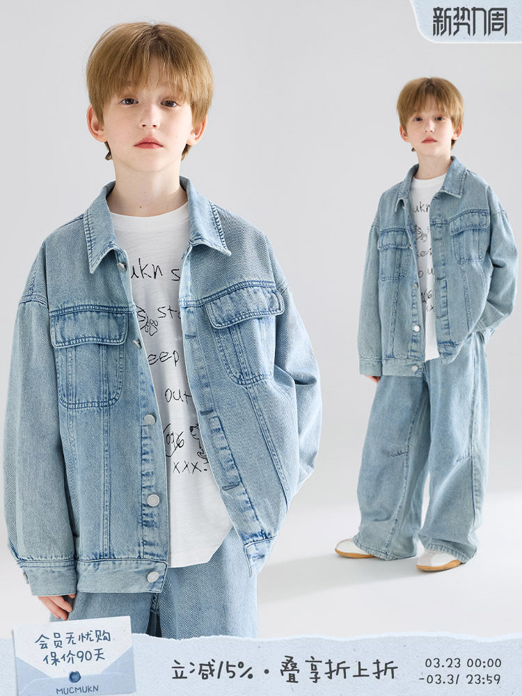【马德里海风】垂感软牛仔外套季薄款不褪色男童牛...