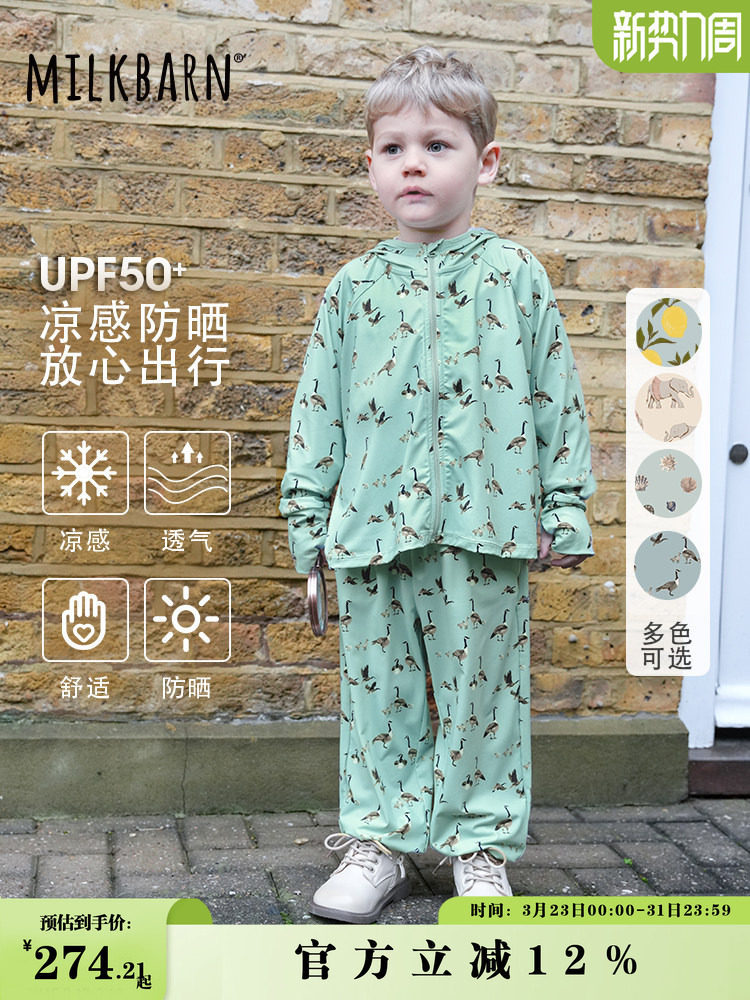 Milkbarn新品儿童防晒衣婴儿宝宝防紫外线连帽男女...