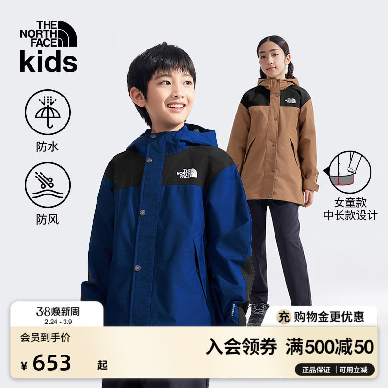 北面童装儿童冲锋衣男女防水硬壳外套户外TheNorthF...