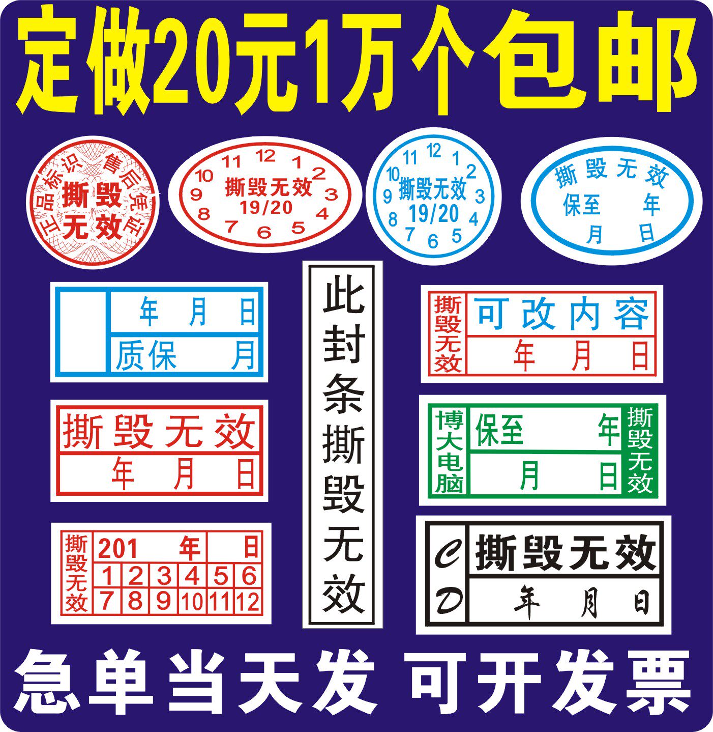 定做易碎标签保修贴日期贴质保贴螺丝贴 维修贴不干...
