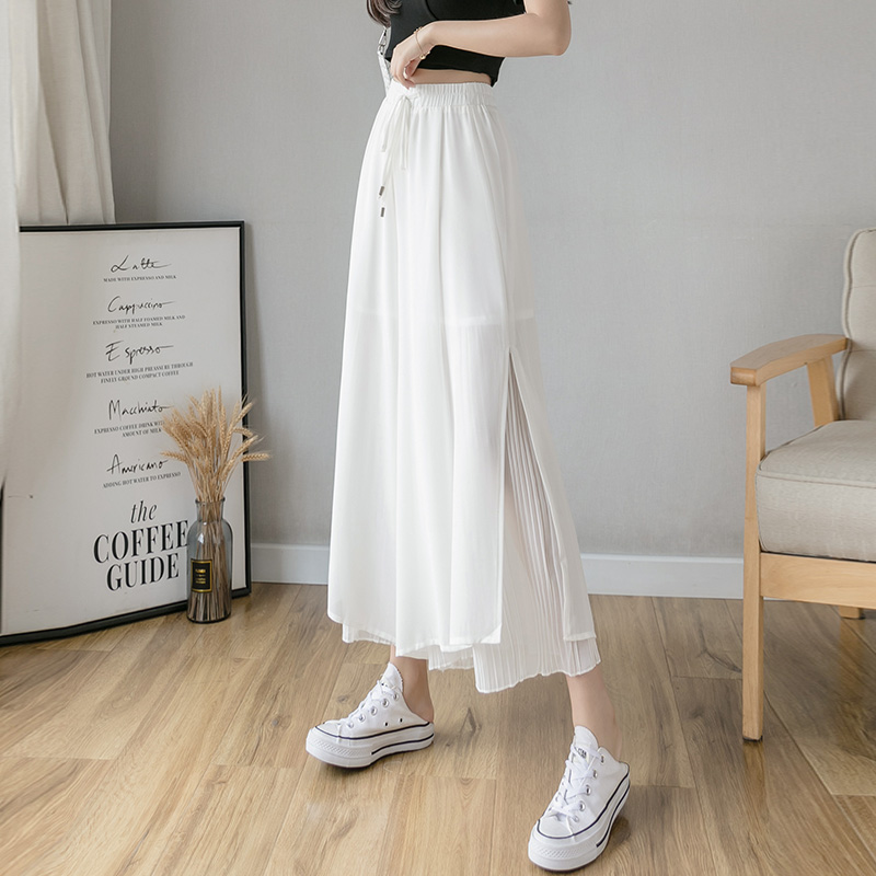 侧开衩雪纺阔腿超仙裙裤一体2024夏季新款女显瘦薄...