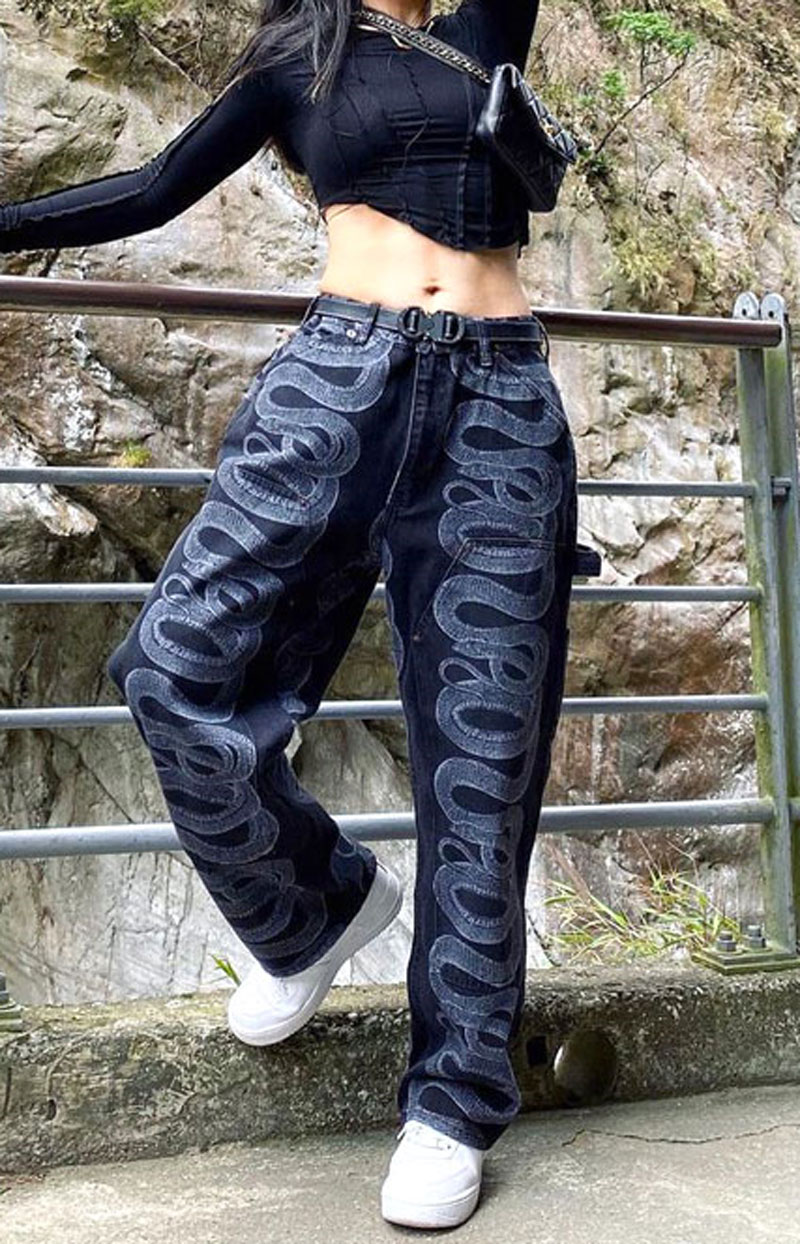 21SS Glamour Denim Pant联名款蛇纹高腰单宁牛仔裤