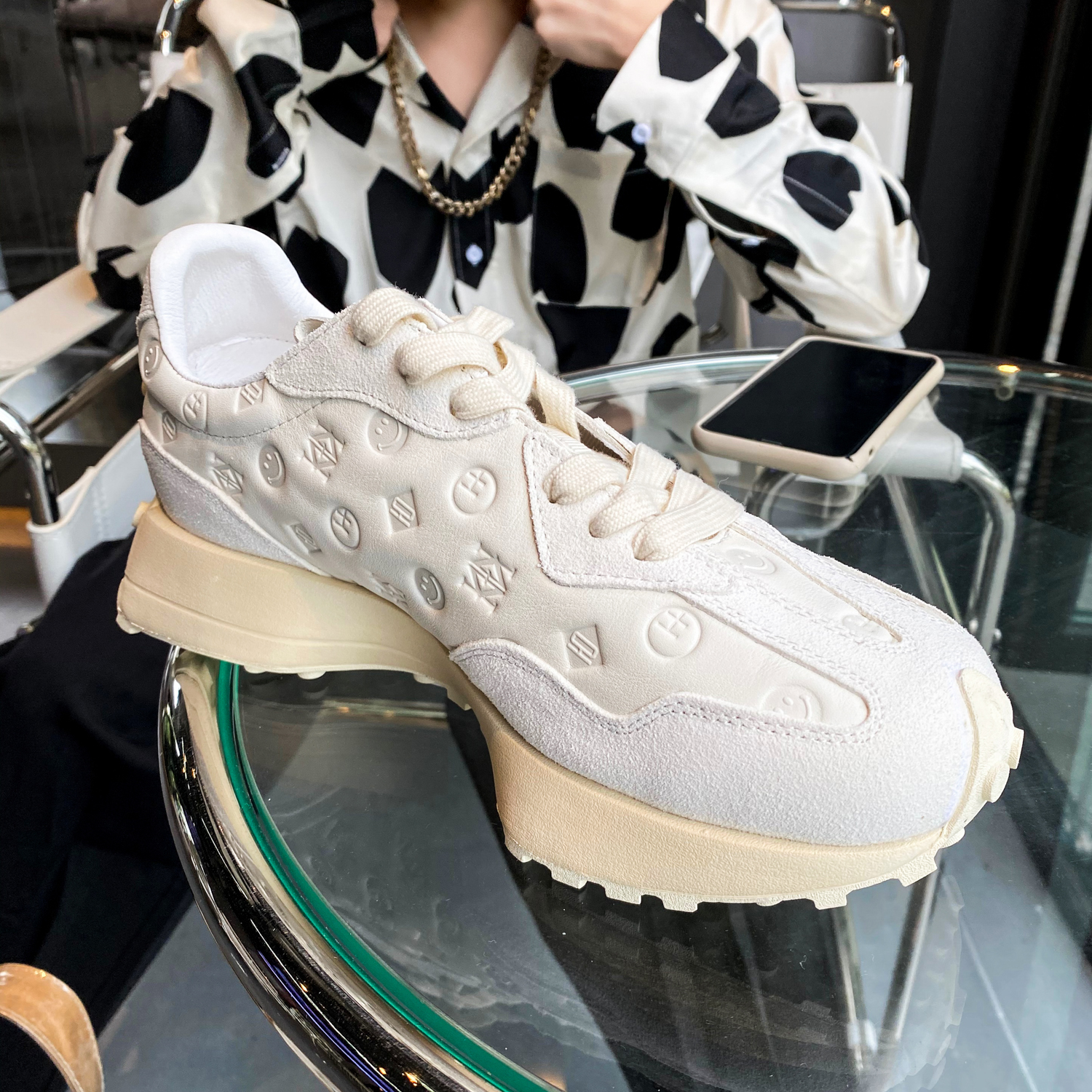 【帽子先森】乳白色复古华夫鞋男老爹鞋厚底运动休...
