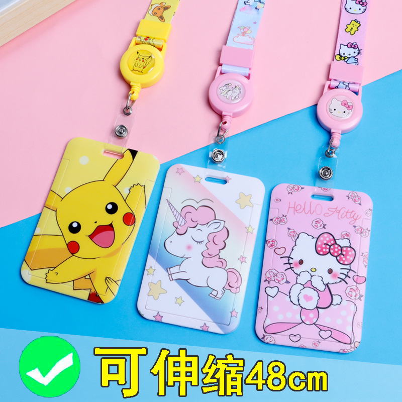 学生校卡套新款卡通硬壳易拉扣挂脖公交卡幼儿园门...