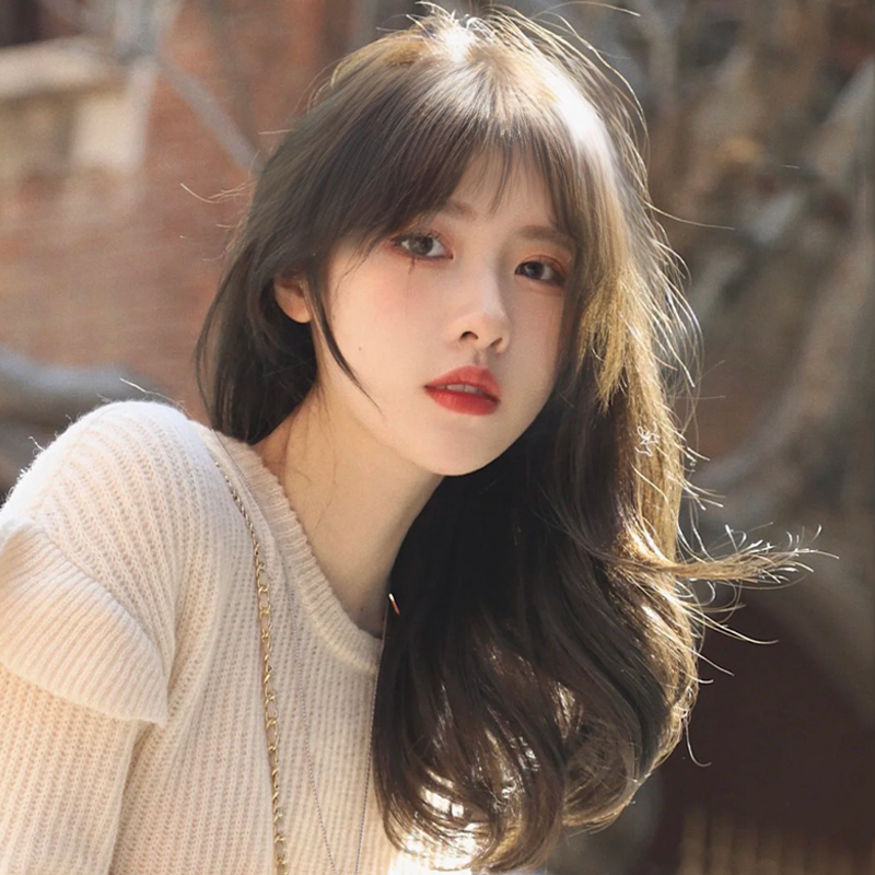 假发女中长发卷发空气刘海冷棕色自然蓬松微卷圆脸...