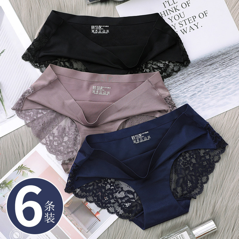 蕾丝无痕内裤女冰丝中低腰纯棉裆大码性感透气日系...