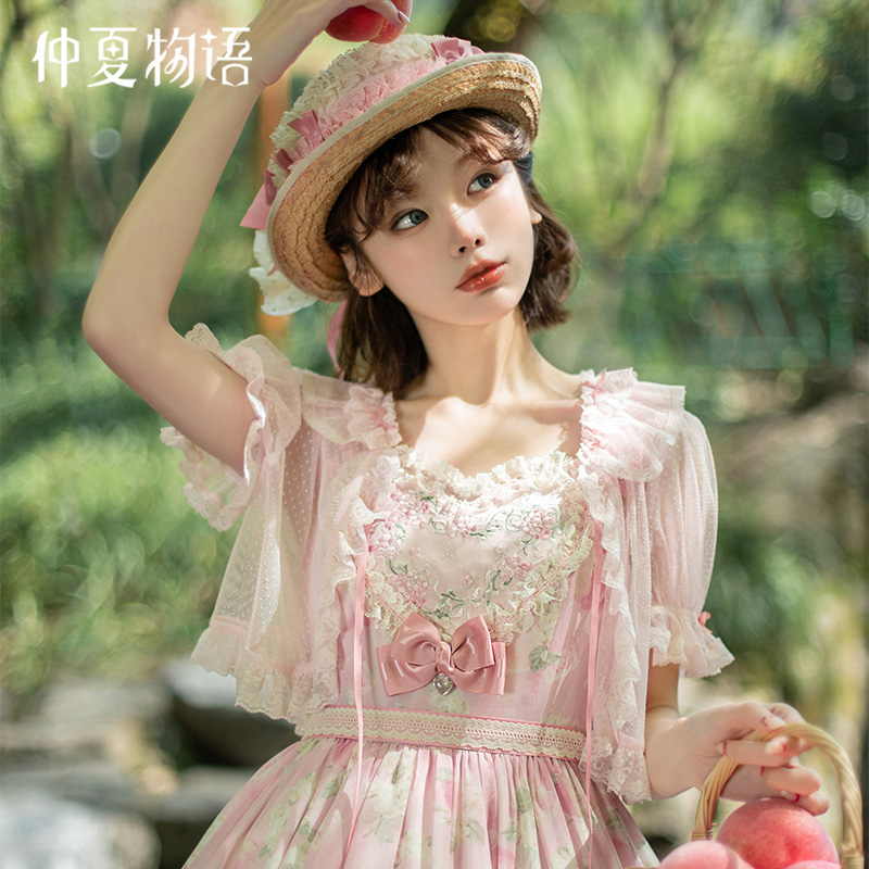 现货 仲夏物语白桃茉莉系列爱心jsk点纱开衫洛丽塔L...