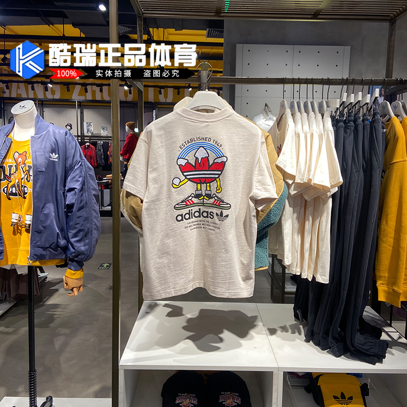 Adidas三叶草 男女 运动涂鸦LOGO休闲宽松圆领透气...