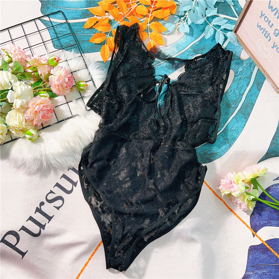 Z371 新品网纱蕾丝单层薄款露背性感绑带吊带连体衣...