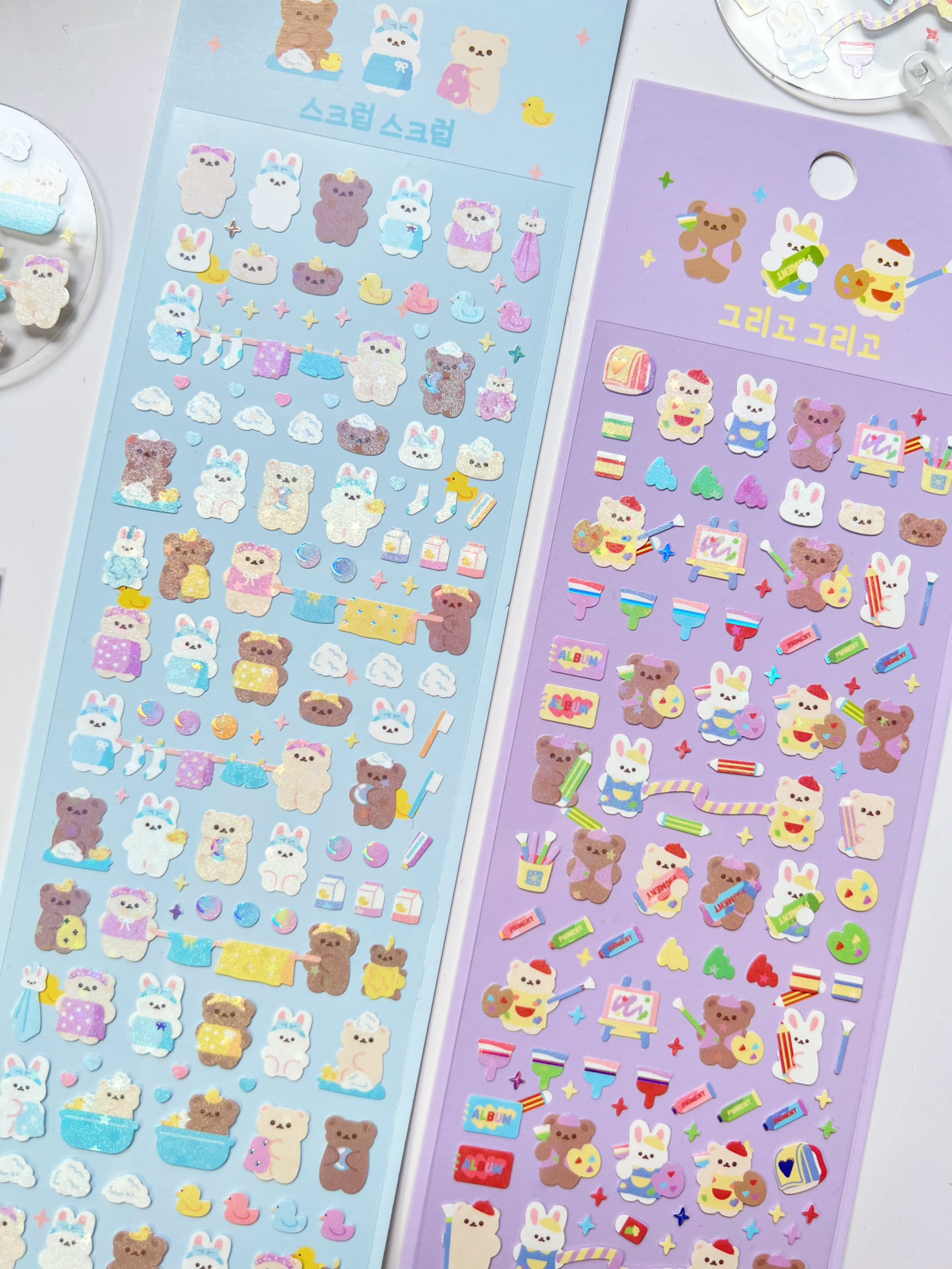 ins超大张画家泡澡小熊小兔咕卡贴纸可爱卡通烫银闪...