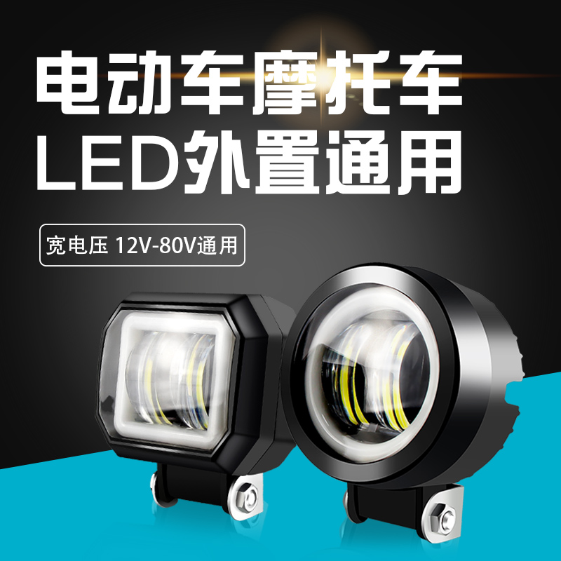 电动摩托车灯led灯改装射灯12-80v外置超亮电瓶三轮...