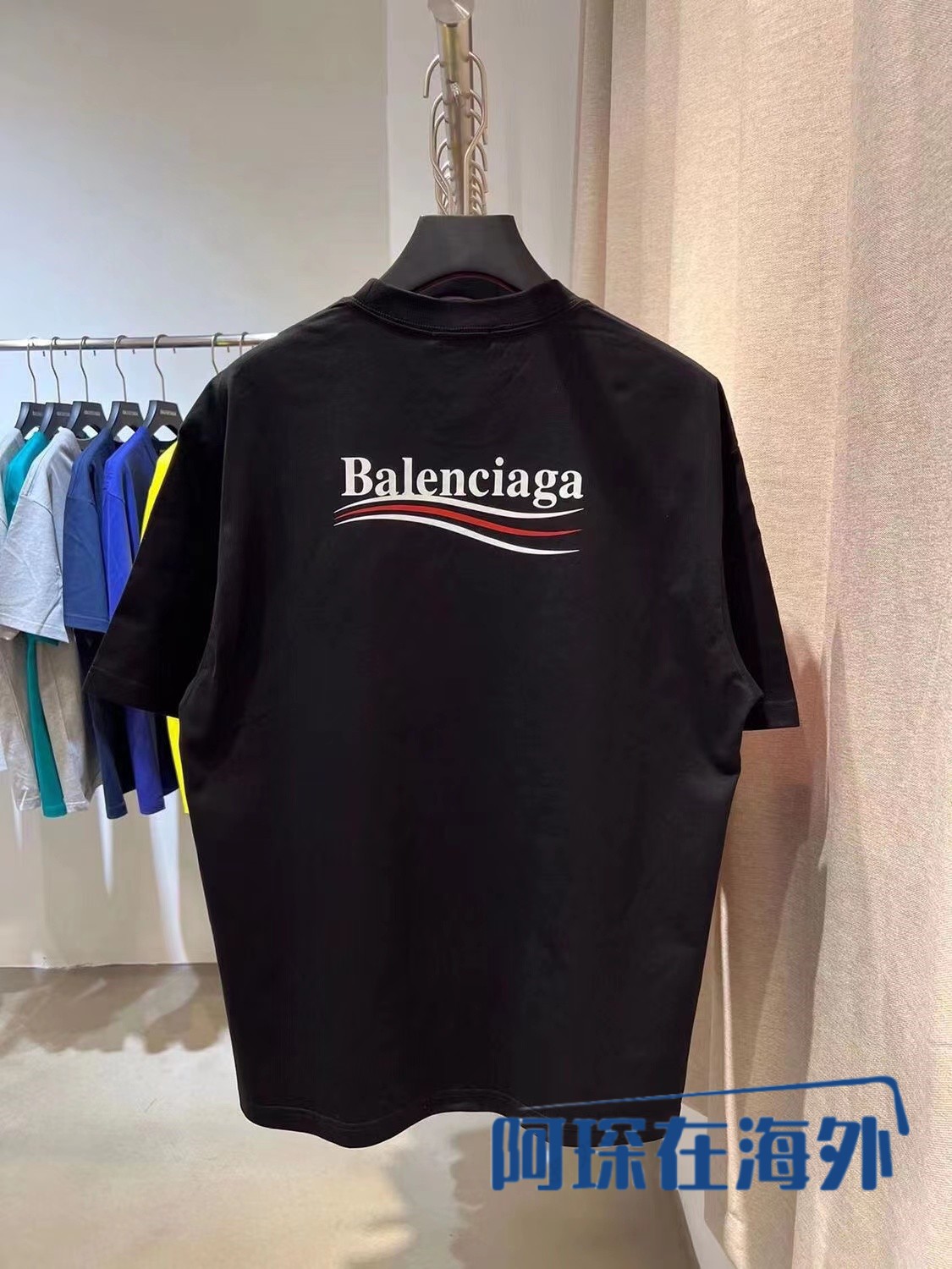Balenciaga巴黎世家23经典可乐波浪印花字母宽松短...