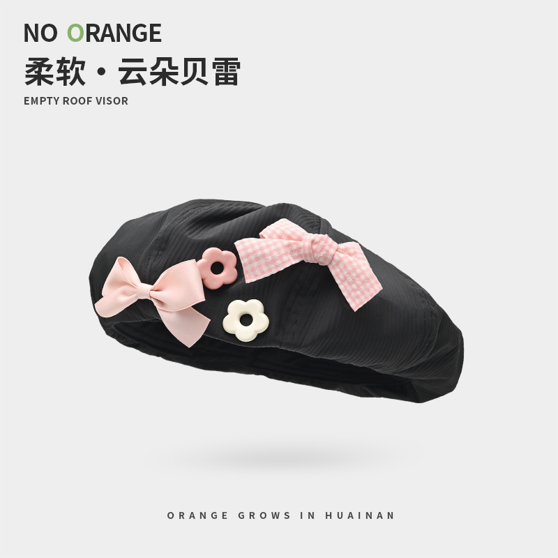 2025新款奶油白贝雷帽女春夏款日系可爱云朵蝴蝶结...