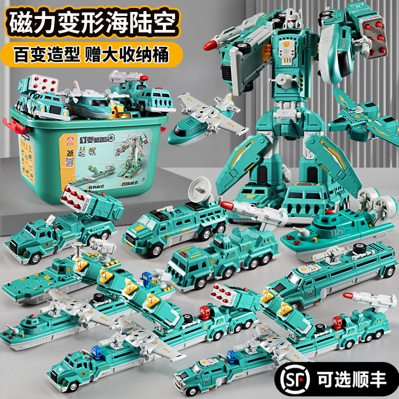 磁力拼接玩具儿童男孩益智拼装变形工程车金刚机器...