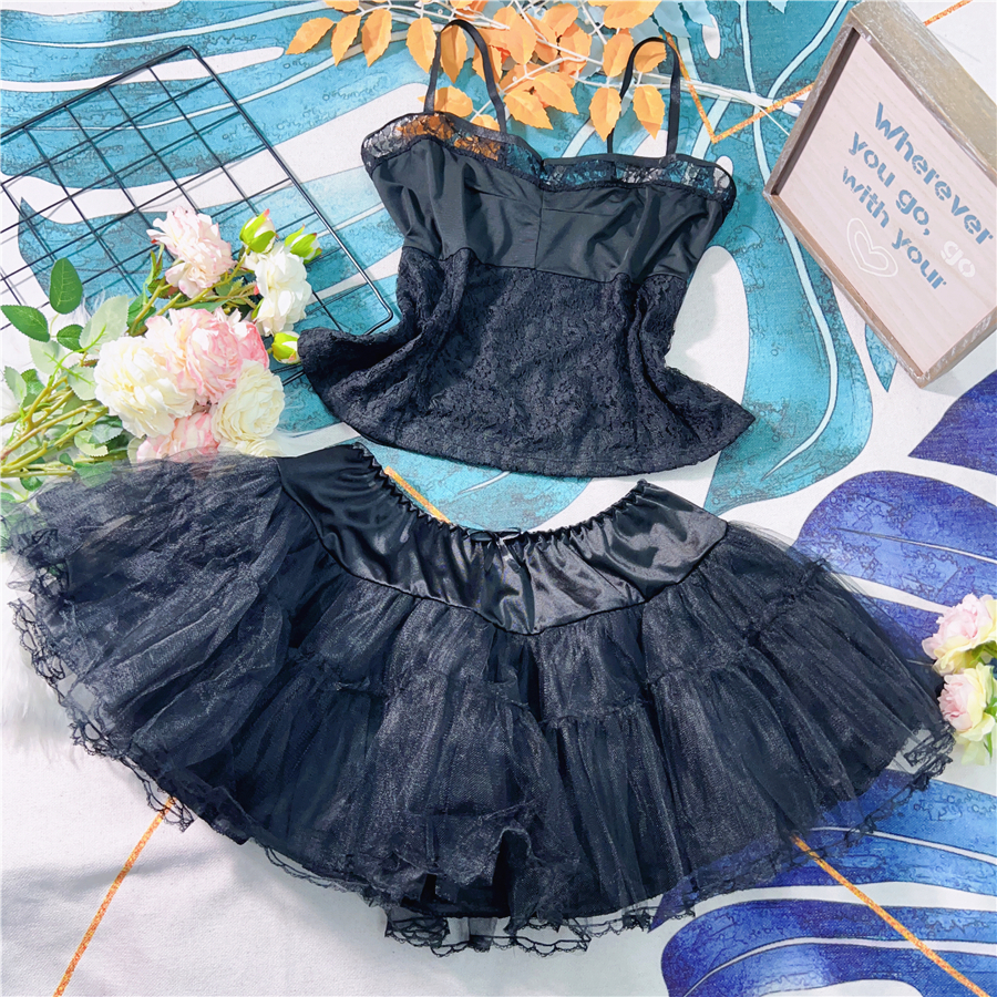 Z439 新品黑色系吊带背心上衣涤纶蕾丝网纱蓬蓬裙短...