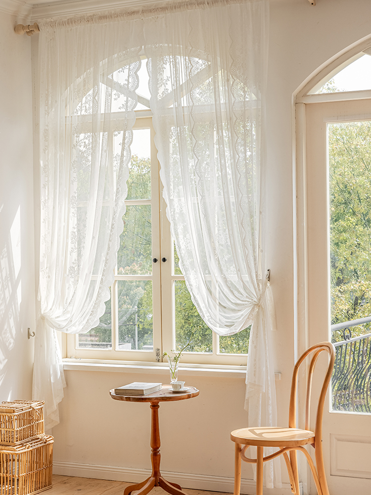 免打孔魔术贴穿杆窗帘窗纱帘法式白色蕾丝客厅阳台...