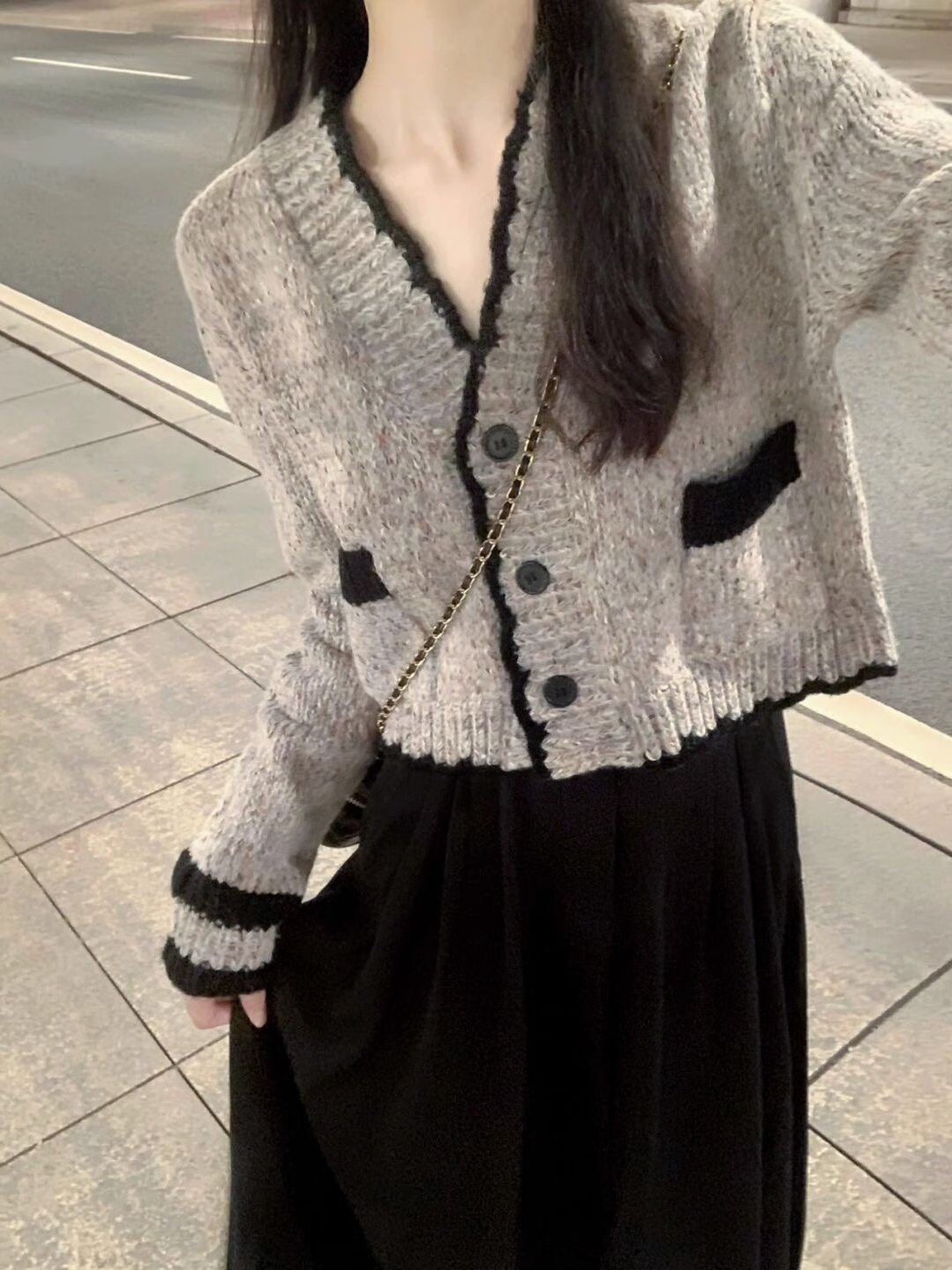 法式小香风V领短款开衫毛衣女2023早秋新款高级感针...