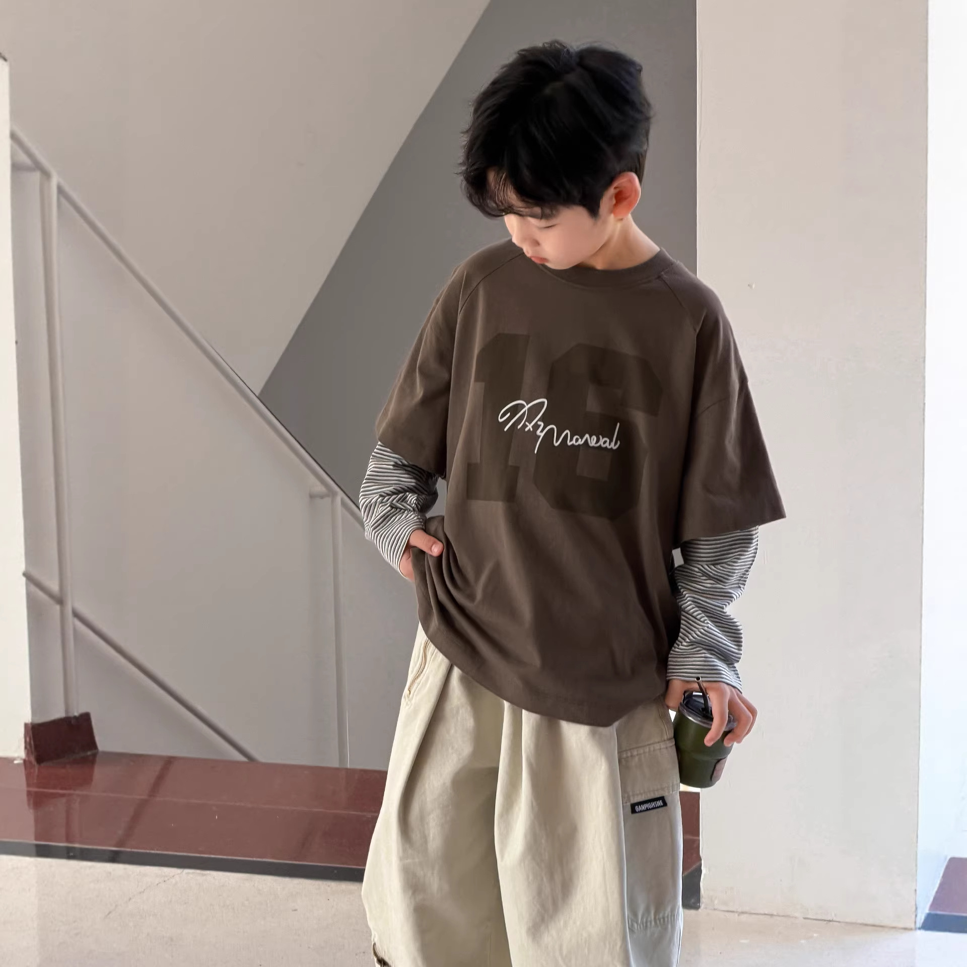 男童长袖t恤春秋款2026新款大儿童装运动假两件上衣...